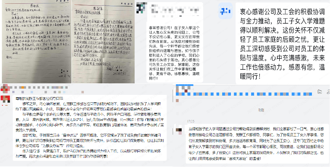 “衷心感謝公司及工會的積極協調與全力推動,讓我們員工子女入學難題得以順利解決。這份關懷不僅減輕了家庭的后顧之憂,更讓我們深切感受到公司對員工的體貼與溫度。心中充滿感激,未來工作也倍感動力。感恩有您,溫暖同行!”這是一位惠州核電職工在其感謝信中,袒露出的真摯心聲。