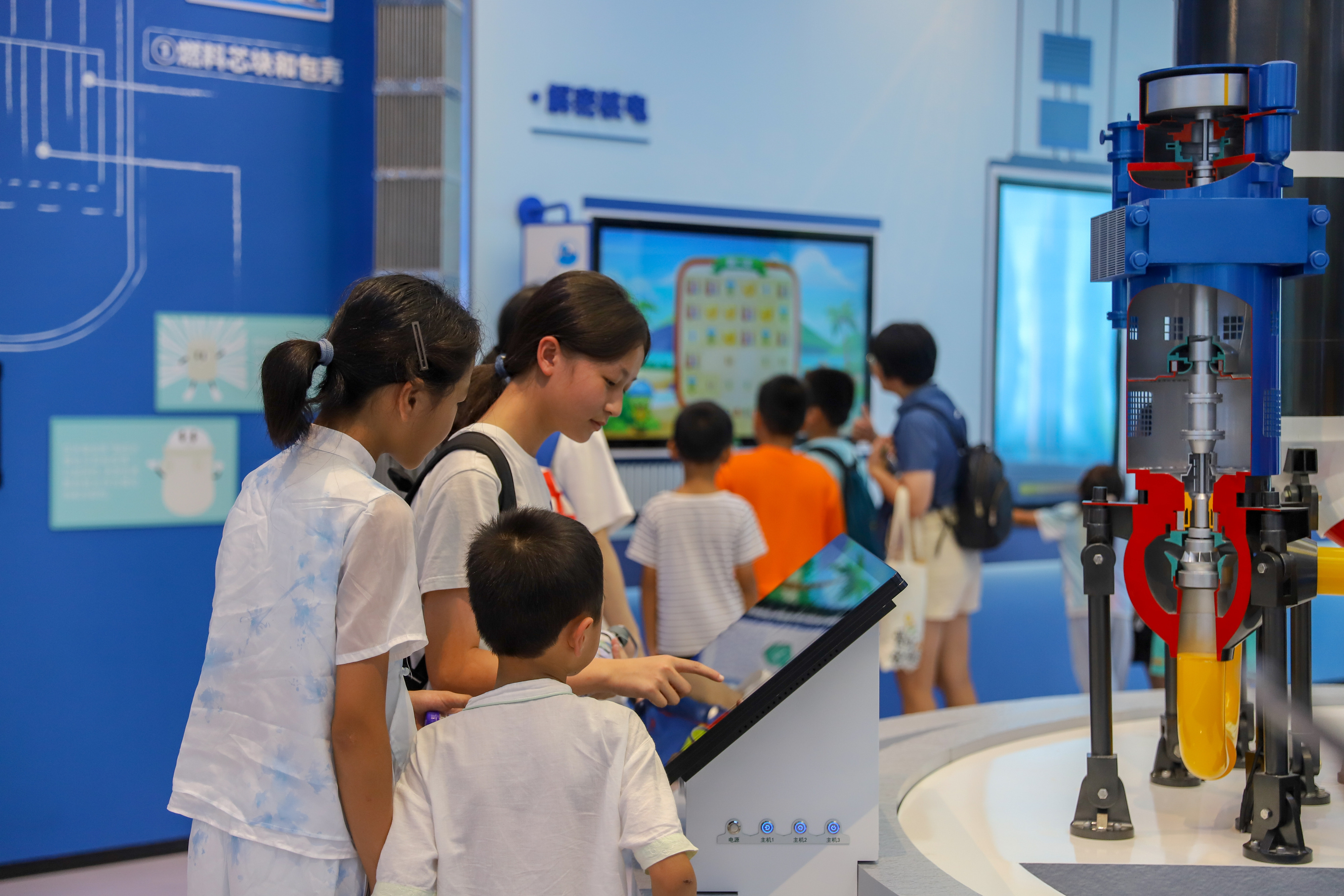 在太平嶺核電科普館內,互動展具與精密模型瞬間點燃大家的好奇心,仿佛打開了核能知識的寶庫?,F場,核電工程師帶領大家集中回溯了集團和惠州核電發展史,讓家長和青少年們對核能這一清潔能源,有了更加全面和深入的認識。同時,沉浸式互動區成為最受歡迎的“打卡點”。青少年們爭先恐后地參與科普游戲,在融入射擊元素的互動體驗中,不知不覺掌握了核電基礎知識。這種貼近青少年的傳播方式,讓科學知識不再枯燥,把探索的種子深深播撒在孩子們心中。