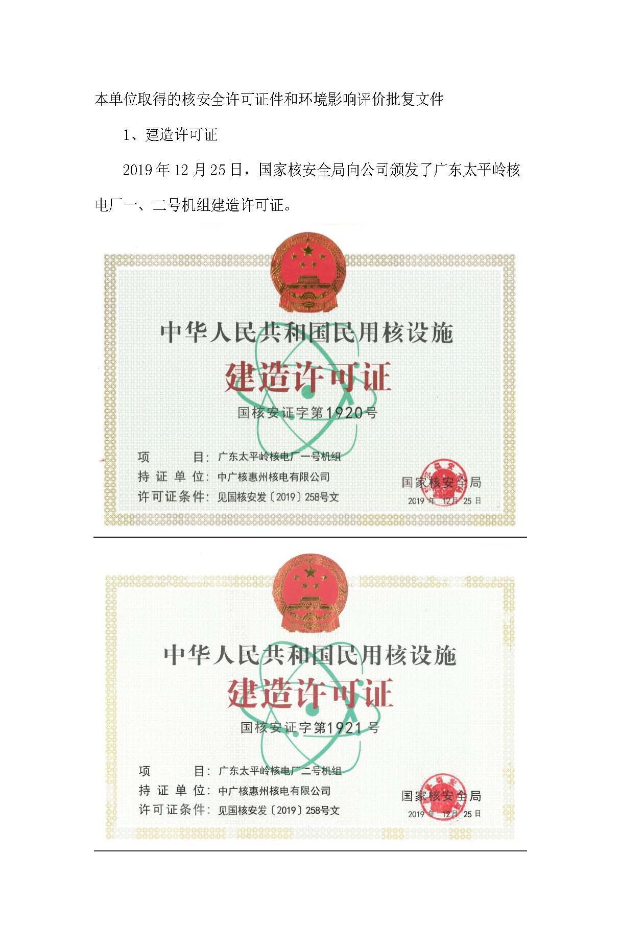 (二)本單位取得的核安全許可證和環(huán)境影響評(píng)價(jià)批復(fù)文件